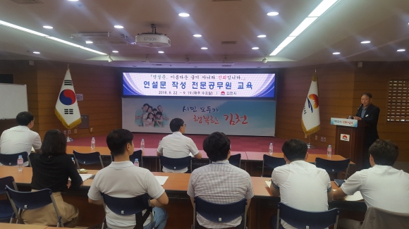 | 김천시가 진정한 글로써 시민과 소통하며 행정신뢰도를 쌓아가고 있다. 시에서는 올바르게 시정을 알린다는 취지에서 연설문 작성 전문공무원 양성교육을 시작했다. 지난 22일부터 시작된 교육은 연설문 작성에 기본 소양을 갖춘 7,8급 공무원(14명)을 대상으로 하고 있다.