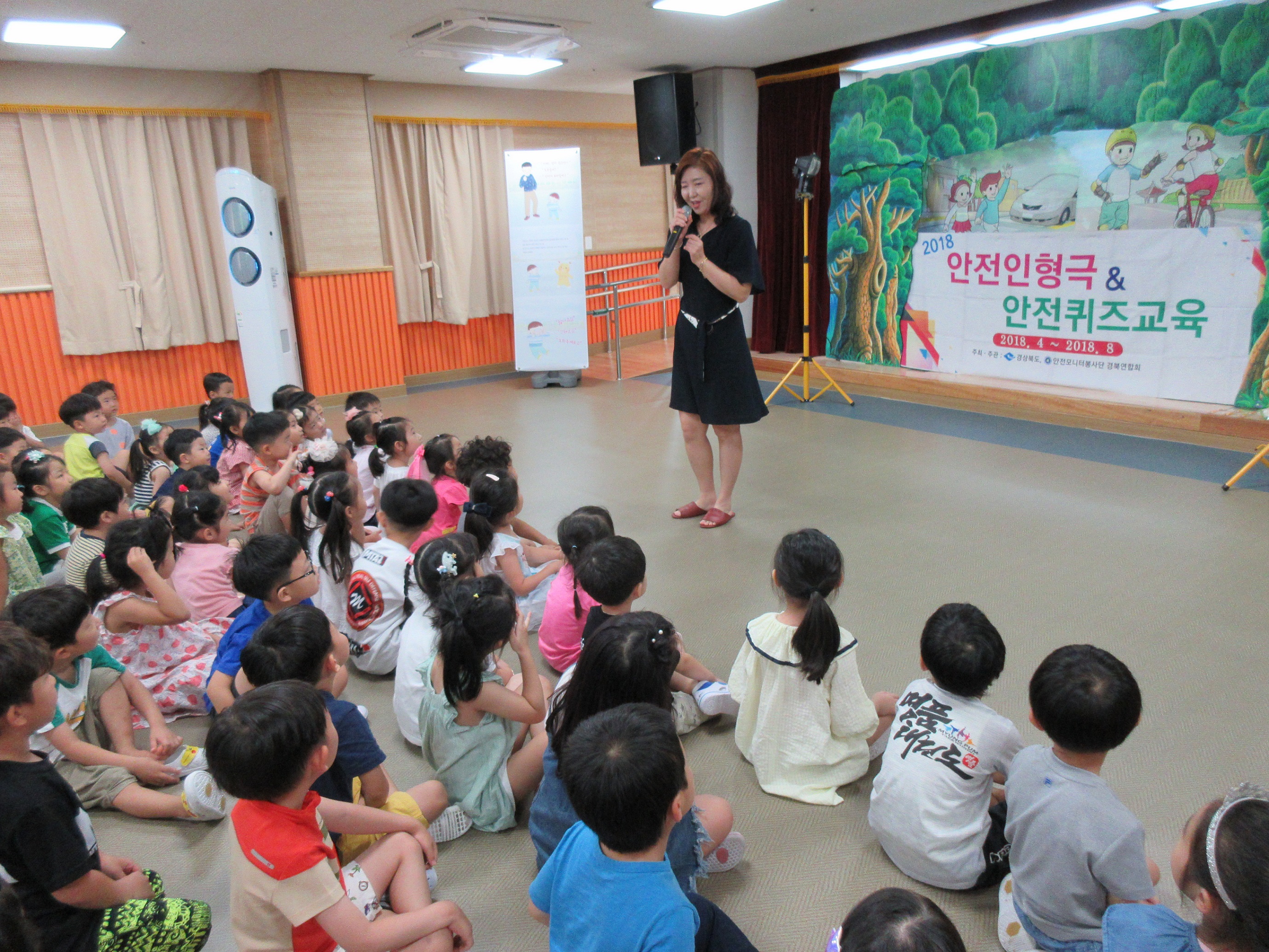 | 농소유치원(원장 이미화) 유아들은 8월 22일(수)에 3층 강당에서 경상북도 안전모니터봉사단 경북연합회에서 주최하는 안전인형극 및 안전퀴즈교육을 실시하였다.