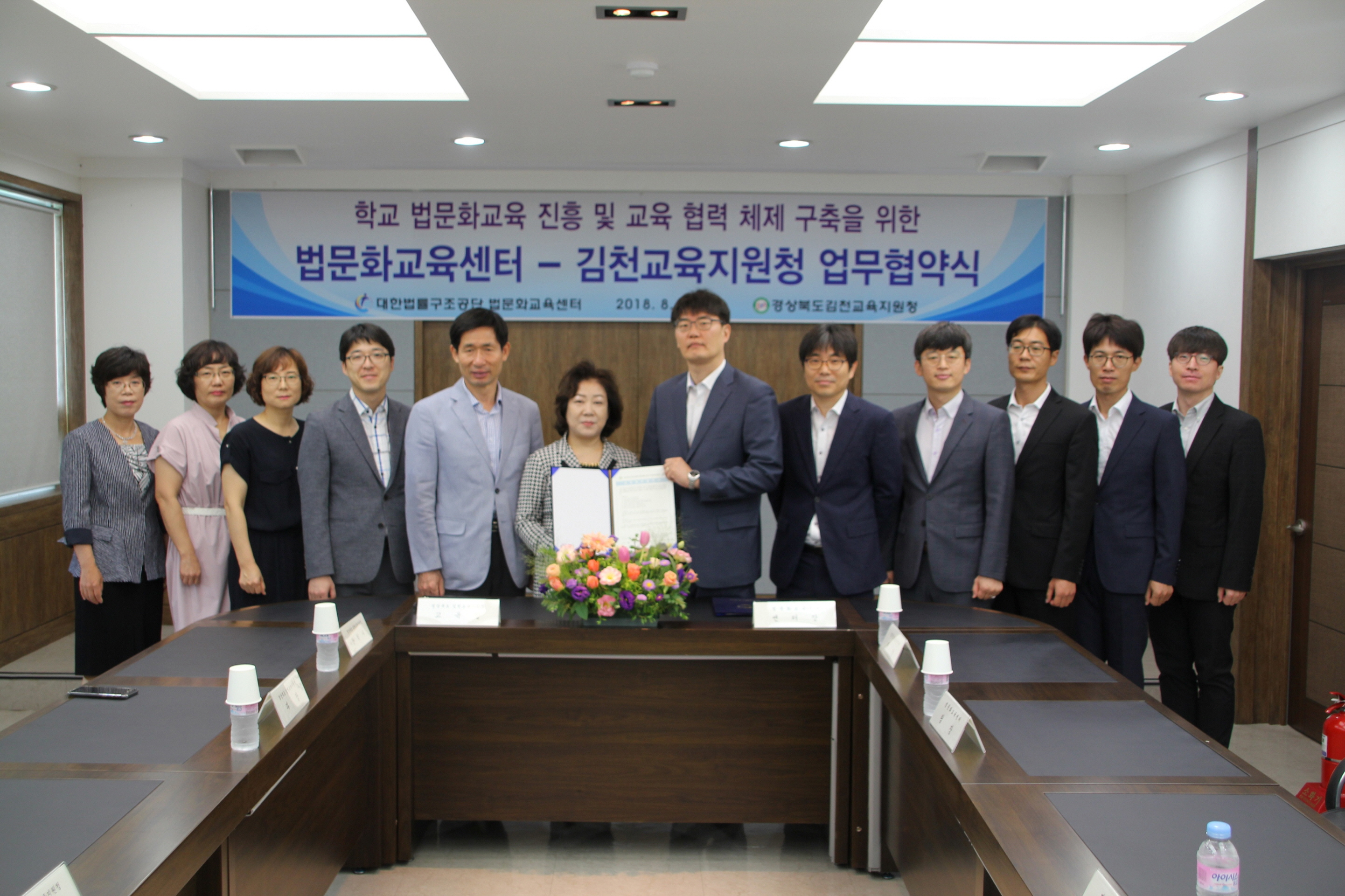 | 경상북도김천교육지원청(교육장 신정숙)은 8월 23일(목) 11시 대한법률구조공단 법문화교육센터에서 상호유기적인 업무협력 체제 구축을 위한 업무협약을 체결하였다.