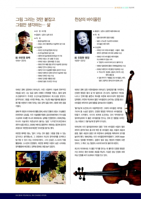 | 오는 8월 30일부터 9월 17일까지 문화예술회관 1~2층 전시실에서 ‘故하반영 화백 & 故진창현 명장 기증 작품전’을 개최한다. 이번 특별전은 2017년 기증받은 하반영 화백의 동·서양화 작품 80점과 2016년 기증받은 진창현 명장의 바이올린 등을 전시할 예정이다.