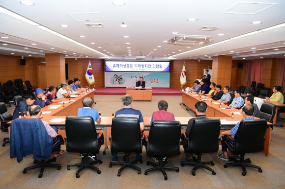이번 간담회는 최근 유해야생동물로 인한 농작물 피해가 눈덩이처럼 불어나고 있는 가운데 농가의 근심을 줄이기 위한 피해예방 근본대책으로 유해야생동물 개체수를 조절하는 것이라고 공감하고 피해방지단이 활동하는데 필요한 연료비 지원과 함께 기존에 고라니에 대해서만 지급하던 포획포상금을 멧돼지까지 확대·운영하기로 했다. 또한, 피해방지단이 활동하는데 애로사항을 청취하고 효율적인 유해야생동물 포획에 대해서 의견을 교환하는 자리였다.