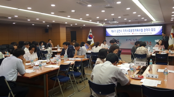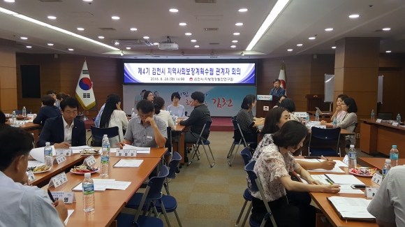 | 지난 28일 김천시(시장 김충섭)에서는 사회보장급여 법에 따라 4년마다 수립하는 법정계획인 지역사회보장계획 수립을 위해 ‘제4기 지역사회보장계획수립을 위한 관계자 회의’ 를 지역사회보장협의체와 관계부서 담당자들과 함께 개최하였다. 이날 회의에는 지역사회보장협의체 위원과 각분과, 사회복지과, 평생교육원, 새마을문화관광과, 일자리전략실, 건강증진과, 보건위생과 등 관련부서 직원 45명이 참석하였다.