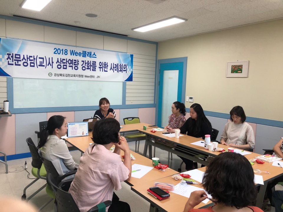 | 경상북도김천교육지원청(교육장 신정숙) Wee센터는 지난 28, 29일 양일간 김천교육지원청 3층 Wee센터에서 김천 관내 초, 중, 고등학교 Wee클래스 전문상담(교)사 및 Wee센터 전문상담인력 27명을 대상으로 2018년 Wee클래스 지원을 위한 상담 사례회의를 운영하였다.