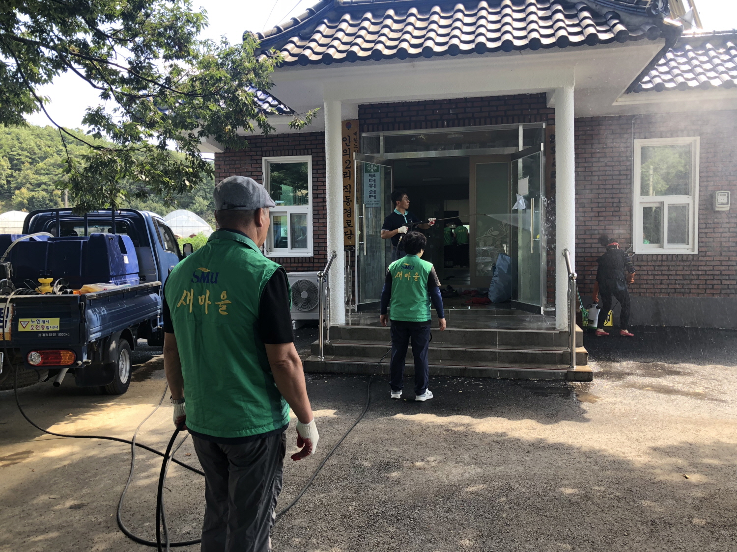 이번 소독작업은 전문 방역업체에서 싱크대 내부 및 주변에 개미, 진드기, 바퀴벌레, 쥐 등 위생해충이 서식하지 않도록 실내 전용 약제 살포 및 분무소독을 실시했으며, 새마을협의회 회원들은 마을회관 내부 및 외부 환경정비를 실시하는 방법으로 추진됐다. 새마을협의회(박희왕·이남수) 회장은 “추석을 맞아 고향을 찾은 주민들이 깨끗한 마을 회관을 이용할 수 있게 된 것 같아 보람을 느낀다.”고 말했고,
