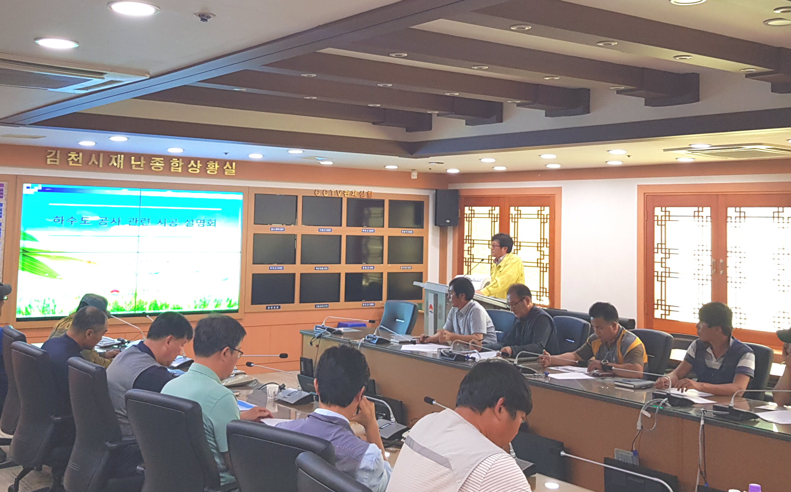 | 김천시 상하수도과(과장 조공제)에서는 지난 5일 오후 시청 1층 재난종합상황실에서 하수도 공사를 하는 시공사를 대상으로 잘못된 시공사례 공유 및 부실시공 방지를 위하여 시공 설명회를 개최하였다.
