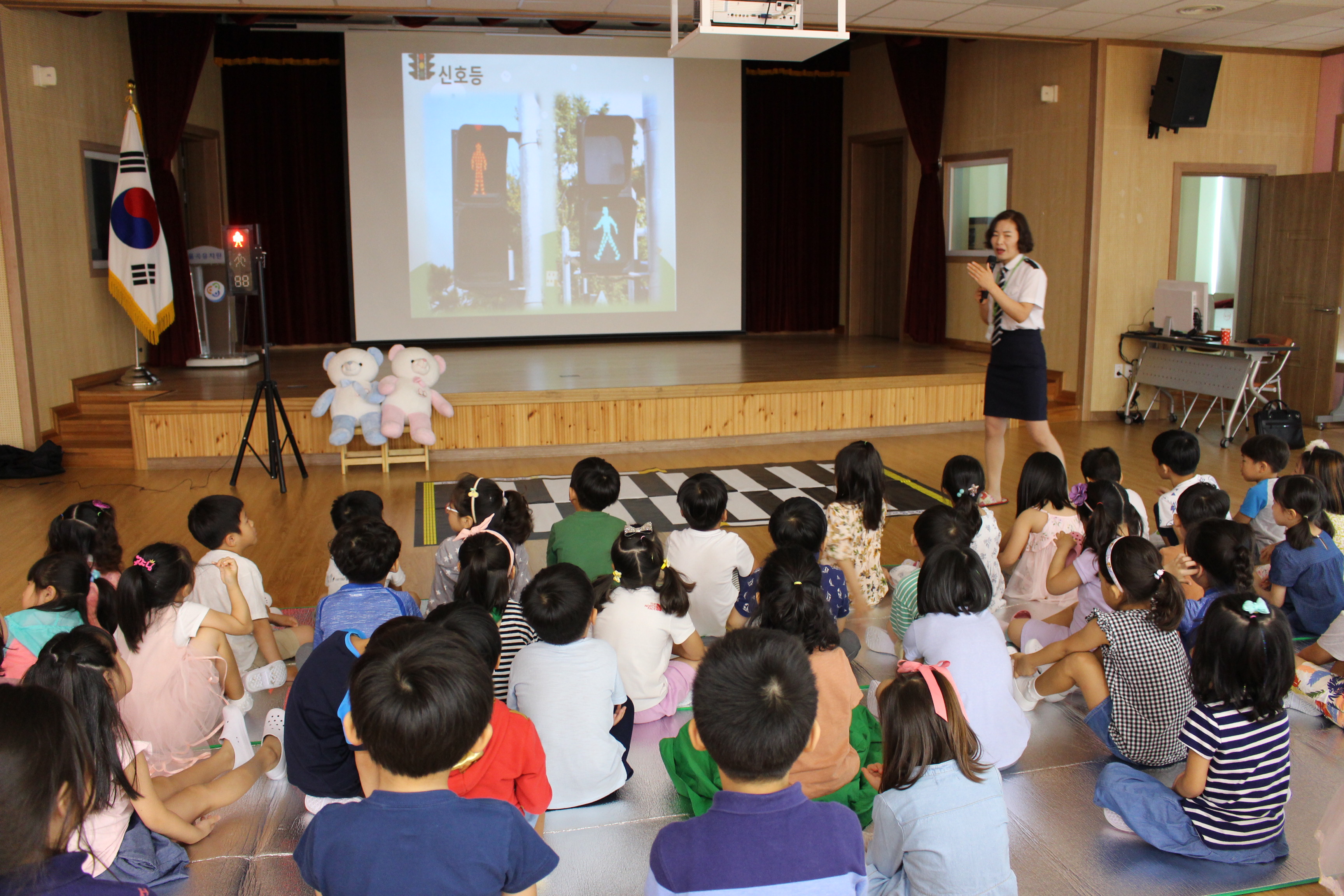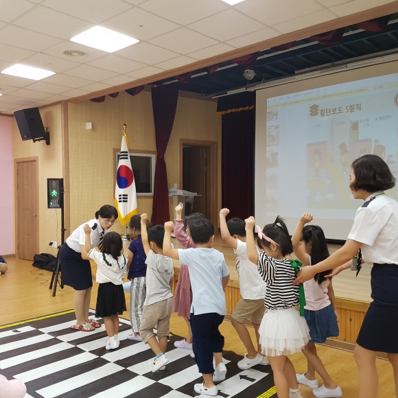 교육내용은 편리한 교통수단에 대해 알아보기, 신호등과 횡단보도에서의 안전, 안전벨트의 필요성, 비오는 날의 교통안전, 횡단보도 5원칙에 대해 알아보고 직접 건너는 실습을 하는 체험중심 교육으로 이루어졌다.