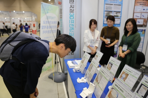 경북보건대학교 고령친화용품팀(팀장 한남경)은 홍보부스에서 ‘고령친화3D프린팅 캡스톤디자인 아이디어 시제품 경진대회’에서 수상한 ▲ LED 돋보기 ▲ 농작물 수확 의자 ▲ 인듀어 휠체어 ▲ 블록계단 ▲ 탈부착 목 보조기 등의 20여개의 3D프린팅 출품작을 선보였다.