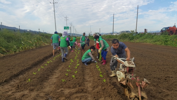개령면새마을협의회, 휴경지 배추모종심기 실시