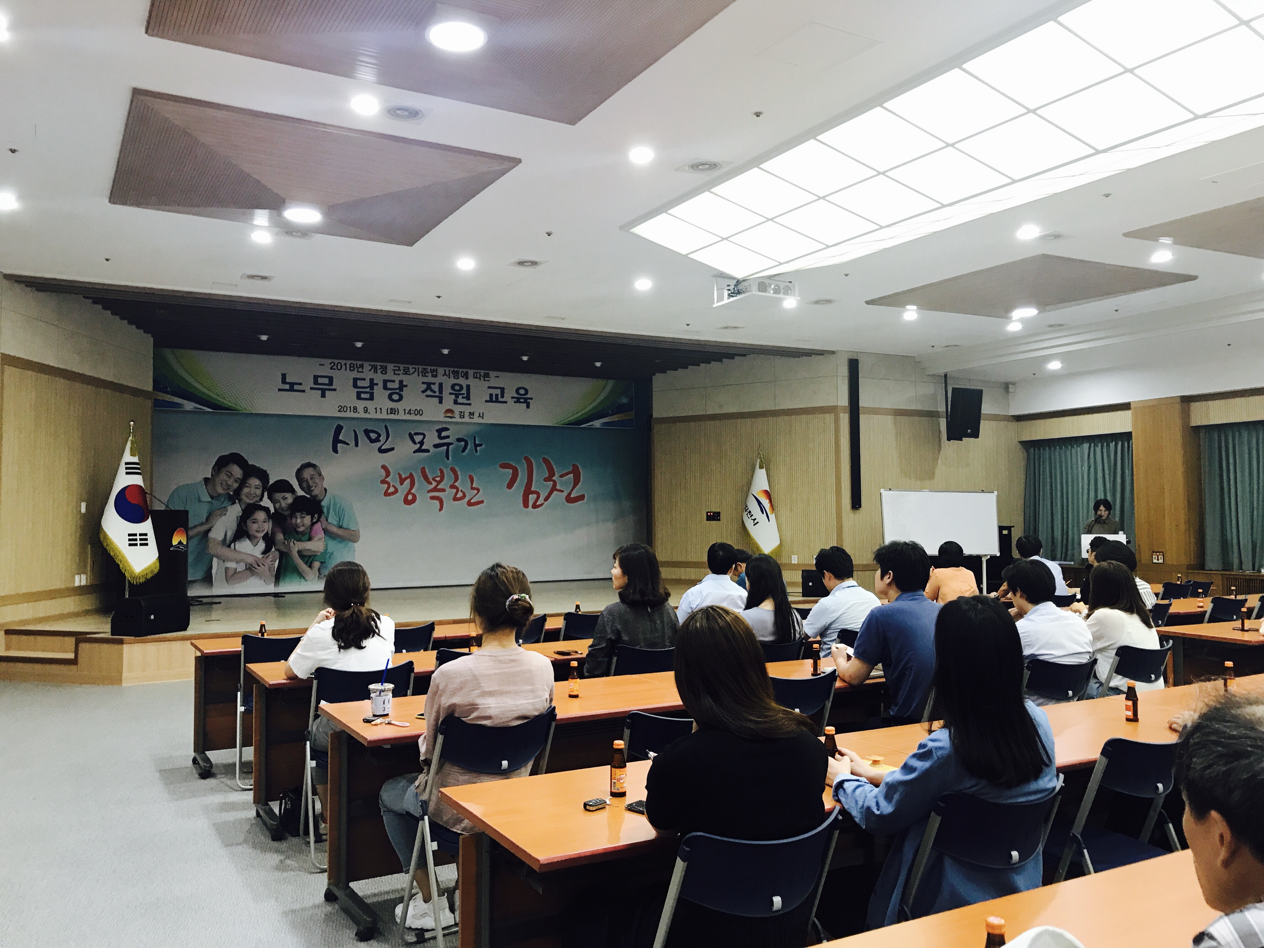| 김천시는 9월 11일 시청 3층 강당에서 공무원 100여명을 대상으로 ‘2018년 개정 근로기준법 시행에 따른 노무 담당 직원 교육’을 실시했다.