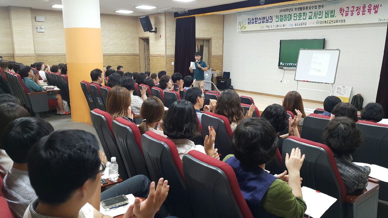 2018학년도 김천교육지원청 학생활동중심수업 연수회는 최혜경선생님의‘사람을 소중히 여기는 행복한 수업수업’과 서근원교수님의‘아이 눈으로 수업 보기’등‘학생과 교사가 행복한 수업, 교육의 중심은 학생입니다’라는 주제 아래 세 차례의 연수회가 진행되었다.