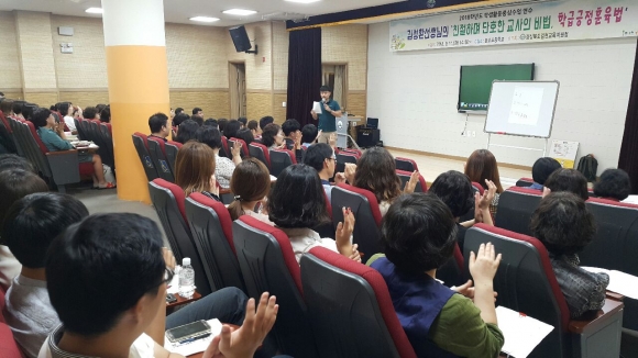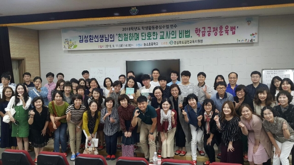 | 경상북도김천교육지원청(교육장 신정숙)은 지난 11일(화) 농소초등학교 시청각실에서 관내 초등학교 교사 100여명을 대상으로‘친절하며 단호한 교사의 비법, 학급긍정훈육법’에 대해 3차 학생활동중심수업 연수회를 개최하였다.