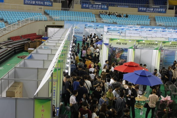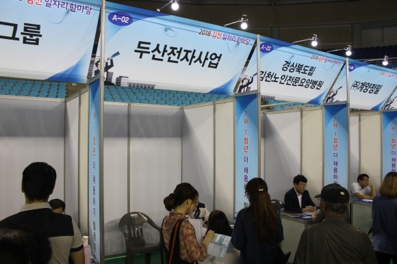 | 이날 행사에는 코오롱, 두산전자사업 등 대기업을 비롯해 지역 우수중소기업인 ㈜계양정밀, 한국SMT, ㈜한독 등 42개사가 참여하며, 현장면접과 취업상담을 진행해 생산직과 사무직, 기술·기능직, 영업·판매직 등 다양한 직종에서 많은 구직자를 채용하기로 해 성공적인 지역 일자리 구인·구직 행사가 되었다.