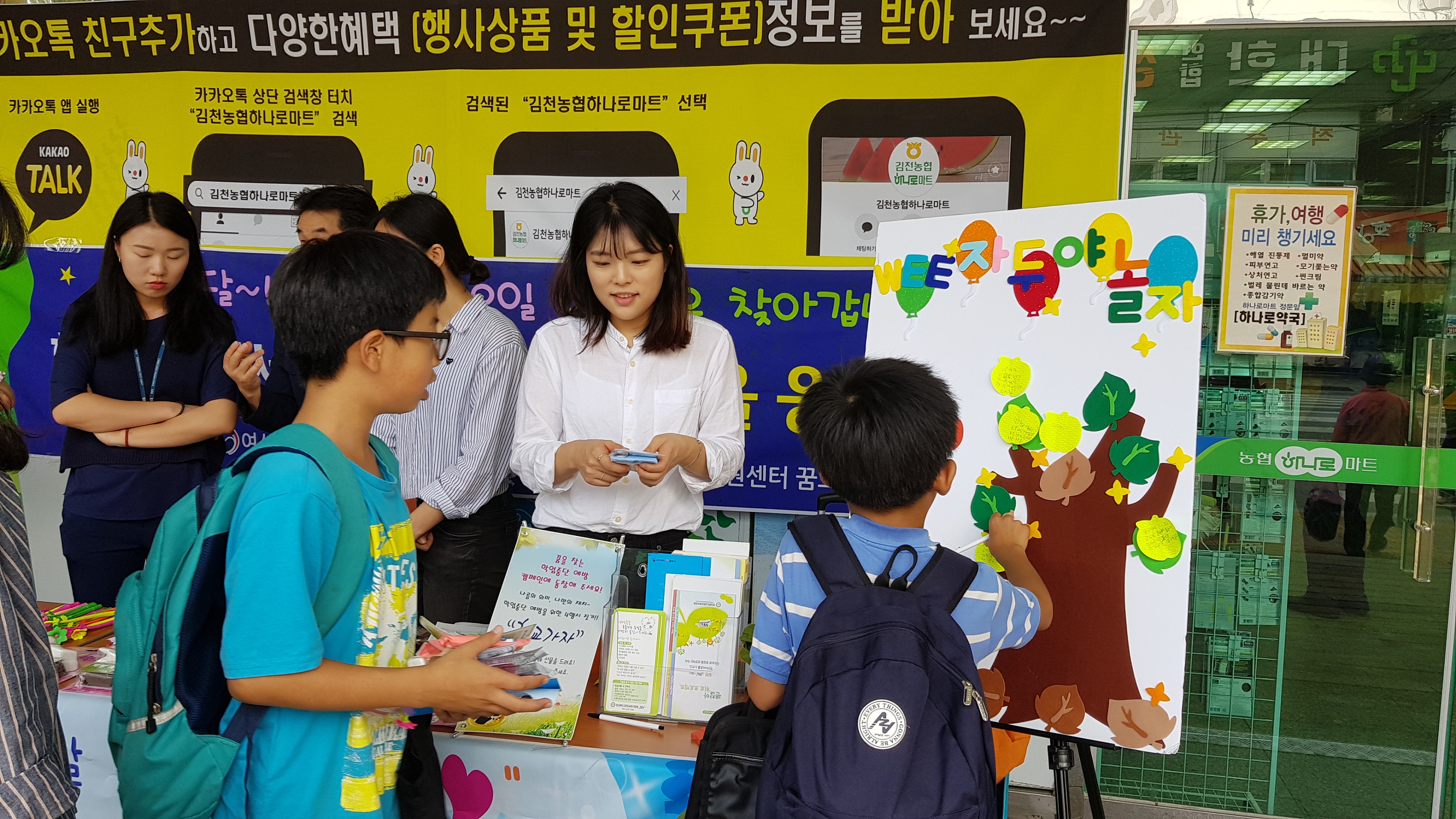 | 경상북도김천교육지원청(교육장 신정숙) Wee센터는 지난 12일(수) 김천농협하나로마트 및 김천공용버스터미널 일원에서 김천 관내 학생, 학부모 200여명을 대상으로 학업중단 예방 및 학교적응력 향상을 위한 ‘학업중단 예방의 날’캠페인 및 홍보 부스를 운영하였다.