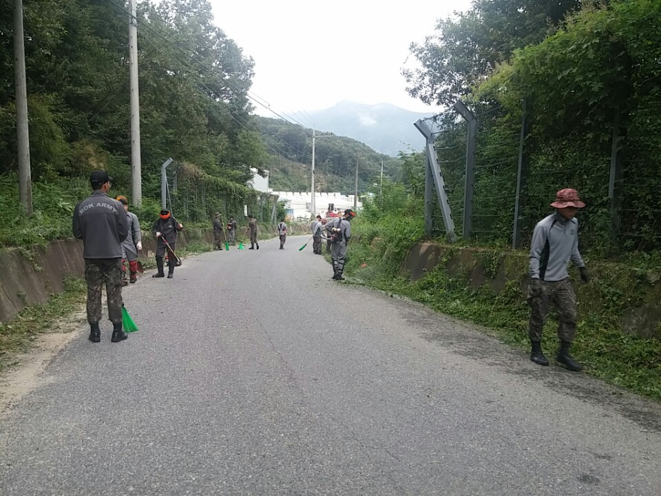 | 김천시 남면에서 어모부대 장병 20여명과 성주 맛골부대 5명은 농촌고령화로 취약한 월명2리(운봉, 상능) 마을을 찾아 추석을 맞이하여 마을진입로 주변 환경정비를 실시하였다.