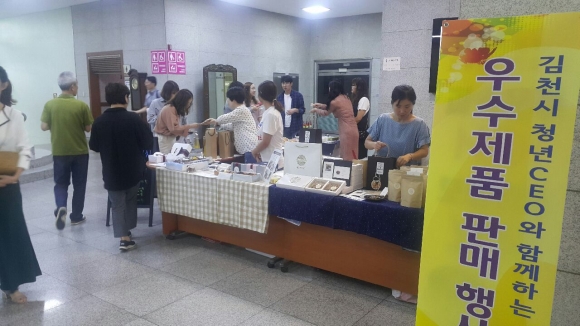 | 김천시(김충섭 시장)에서 배출한 청년CEO들의 우수제품을 홍보하기 위한 「김천시 청년CEO 우수제품 홍보·판매행사」가 지난 13일(목)부터 14일(금) 이틀동안 김천시청 1층 로비에서 개최됐다.