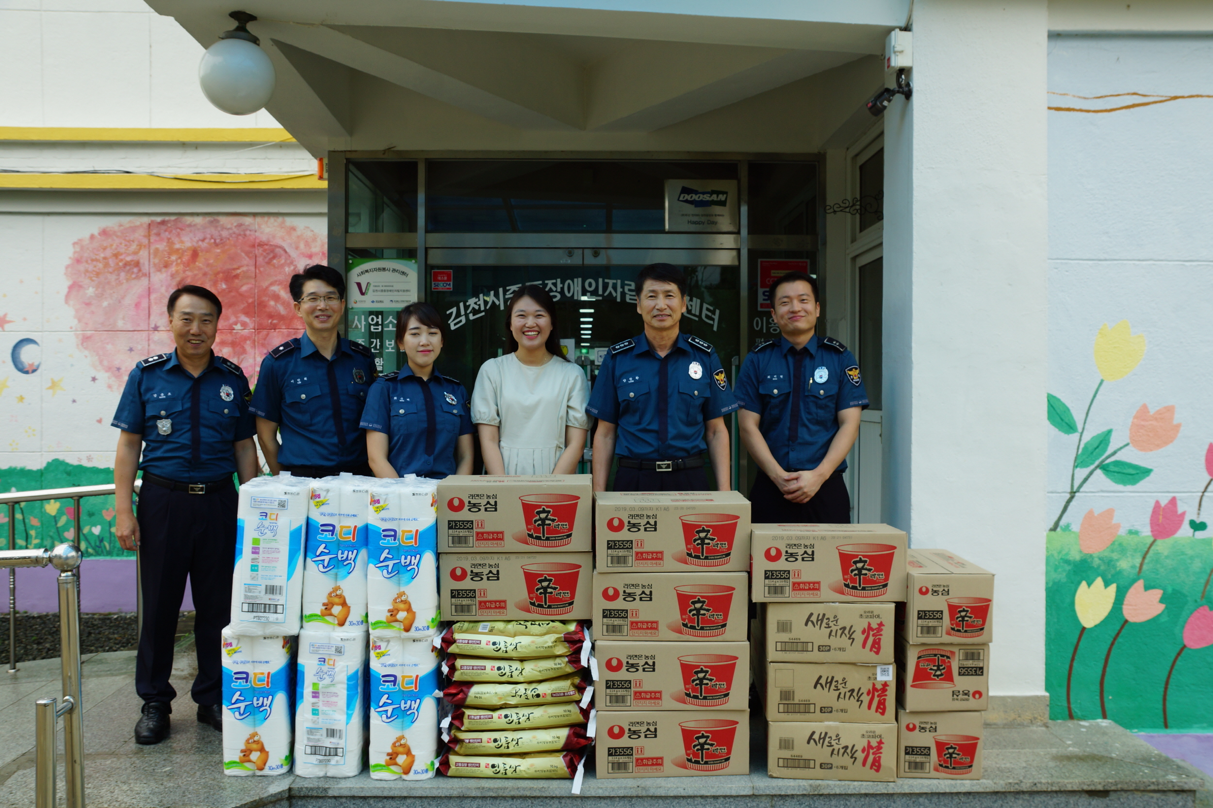 | 김천경찰서(서장 김우락)에서는 9월 14일(금) 김천경찰서 반딧불 봉사단은 추석을 맞아 지역주민과의 상생 및 소외계층과의 나눔을 실천하고자 어모면 소재 김천시 중증장애인자립지원센터을 찾아 재능기부를 통한 사랑을 전했다.