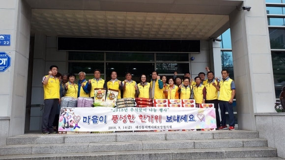 대신동지역사회보장협의체(위원장 이옥혜)는 제3기 대신동지역사회보장협의체 위원으로서 활동기간중 처음으로 맞이하는 추석에 그동안 위원님들께서 복지사각지대 대상자를 발굴하여 오늘 위문품을 전달하게 되어 뜻깊게 생각한다면서, 위원님들께 감사한 마음을 전달하였다. 대신동장(동장 안 민)은 “대신동지역사회보장협의체 위원님들께서 열정을 가지고 우리 대신동에 복지사각지대 해소을 위해 힘써 주셔서 감사한 마음을 전한다”면서 우리 주변 어려운 이웃과 함께 보름달 같은 넉넉하고 정이 넘치는 추석이 되기를 바란다고 말했다.