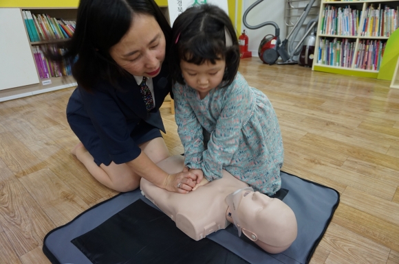 위급상황일 때 응급처치법으로 심폐소생술에 대한 영상물을 시청하고 애니 인형에 유아들이 직접 양 손을 모아 심장을 압박하는 교육을 실시하였다. 활동에 참여한 유아들이 ‘엄마 아빠에게도 심폐소생술 하는 방법에 대해 이야기 해줄래요’ 라며 뜻깊은 시간을 보냈다. 김천신일초등학교병설유치원 권명준 원장은 지속적인 교육으로 유아들의 생활에 안전을 기하도록 강조하였다.