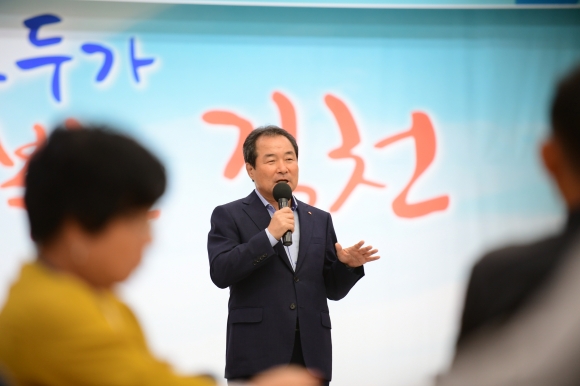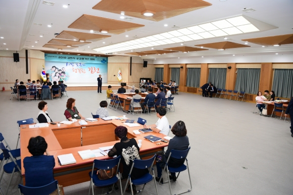| 김천시는 9월 17일 『공약이행 공감평가단』1차 회의를 갖고, 시민과의 교감을 기반으로 하는 공약실천 평가, 검증 단계에 돌입했다. 공약이행 공감평가단은 김천에 거주하는 만 19세 이상 시민으로 공정한 평가를 위해 성, 연령, 지역 등을 고려한 ARS 방식으로 무작위 선발하였다. 인원은 총 51명(5분임)이다.