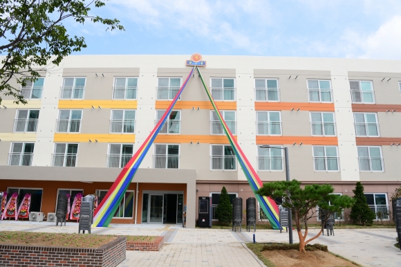 | 김천시(시장 김충섭)에서는 삼애원 거주자의 안락한 주거환경개선과 안락한 삶 제공을 위하여 2016. 6월부터 김천시 속구미 3길 76에 주거동 2개소, 부대시설 1개동 신축을 위하여 우리나라 최대 건설업체인 한국토지주택공사에게 설계부터 건축시공까지 위·수탁을 체결하여 건축한 김천행복타운 준공 행사를 김천행복타운 내 광장에서 입주민, 가족, 입주를 축하하기 위하여 찾아준 내빈, 공사 관계자등이 참석한 가운데 9월 17일(월) 10시 30분에 준공식 행사를 가졌다.