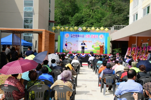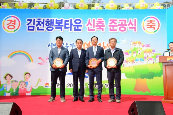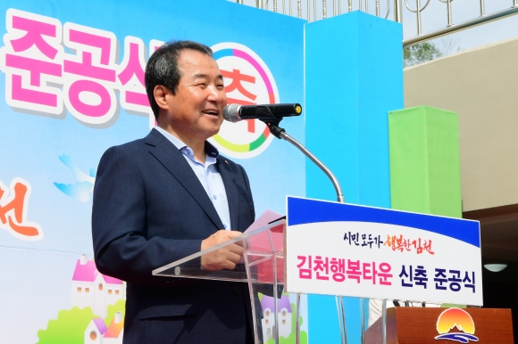 | 한편 김충섭 김천시장은 "이렇게 좋은 계절에 입주를 하게 된 입주민들에게 먼저 축하를 드리며, 인생 100세 시대에 맞게 앞으로도 항상 건강하고 깨끗한 환경에서 생활 할 수 있도록 최선을 다하겠다"고 하였으며, "김천행복타운을 선두로 화장장이전, 신음동과 혁신도시를 잇는 신음동 터널공사를 조속히 진행하여 대신지역개발사업에 박차를 가하겠다"고 하였다.