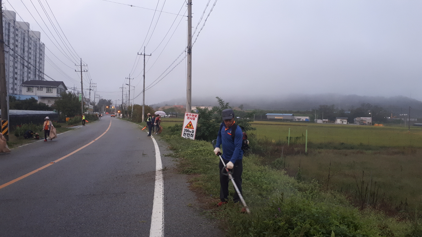 이른 아침부터 30여명의 회원들은 예초기를 이용한 도로변 잡풀 제거와 길가에 흩어져 있는 생활쓰레기를 수거하는 등, 더운 날씨에도 불구하고 구슬땀을 흘려가며 환경정비 하였다.