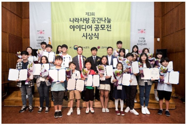 나라사랑 공간나눔 아이디어 공모전은 LG하우시스와 국가보훈처가 미래의 주역인 청소년들의 현충시설에 대한 관심 증대와 애국심 고취를 위해 마련한 행사다. 중·고등학생들을 대상으로 현충시설의 공간 개선에 대한 아이디어를 공모하고 시상하는데 올해로 3회째를 맞이하게 되었다.