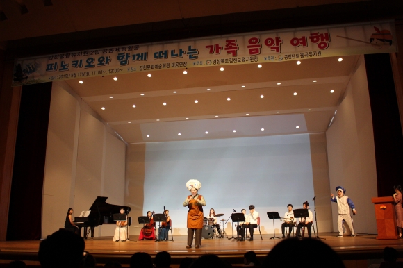 | 율곡유치원(원장 조금숙)은 지난 17일(월) 김천문화예술회관 대공연장에서 ‘피노키오와 함께 떠나는 가족 음악 여행’ 뮤지컬 관람 행사를 실시하였다. 이는 경상북도김천교육지원청이 주최하고 공동네트워크 중심유치원인 율곡유치원이 주관하여 관내 12개 공립유치원의 유아 및 학부모 950여명이 참석한 가운데 개최되었다.
