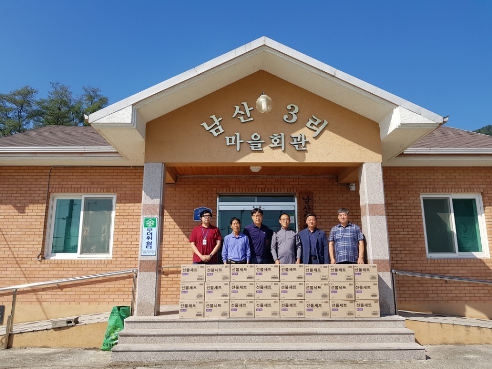 지역사회발전 및 지역민과의 협력 문화 조성을 위하여 KCC김천공장에서는 지속적으로 주변지역인 남산3리 마을과 관내 취약계층에 명절 선물을 전달해 왔다.