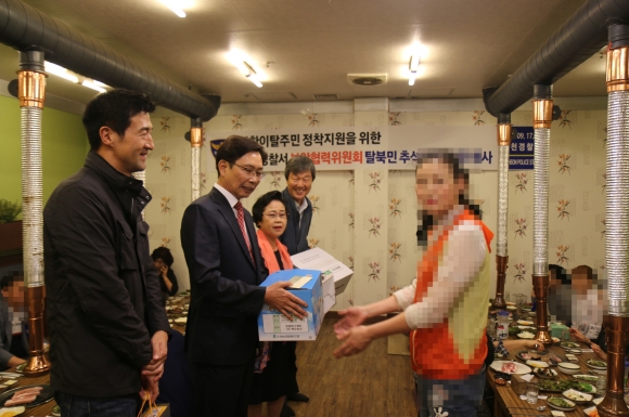 | 김천경찰서(서장 김우락) 보안협력위원회(위원장 여상규)에서는 지난 17일 저녁 6시 30분 김천시 모암동 C 식당에서 김천에서 거주하는 탈북민 40세대를 초청하여 다가오는 추석명절을 맞아 탈북민 추석명절 위문행사를 가졌다.
