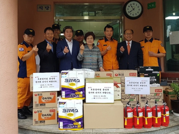 | 한편, 장보기 행사 전에는 최원호 경북소방본부 119종합상황실장, 박경욱 경북소방본부 구조구급과장, 이주원 김천소방서장 및 간부공무원, 지역 도의원들은 김천시 삼락동에 위치한‘임마누엘 영유아원’을 방문하여 위문품을 전달하며 어린이들과 훈훈한 정을 나누었다.