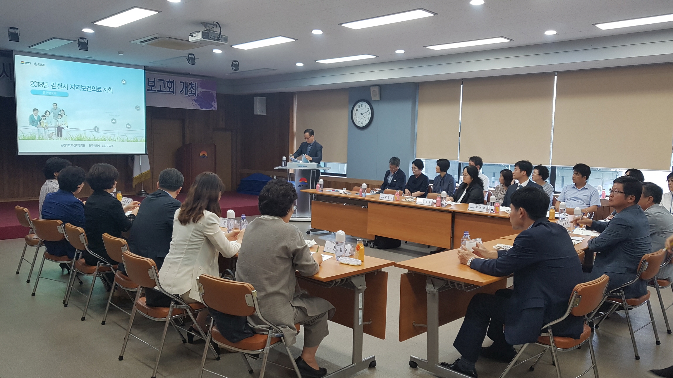 | 김천시(시장 김충섭)는 지난 19일 보건소 3층 회의실에서 기획실무팀 및 지역보건의료심의위원회 위원 50여명이 참석한 가운데 ‘제7기 김천시 지역보건의료계획’수립을 위한 중간보고회를 개최했다.