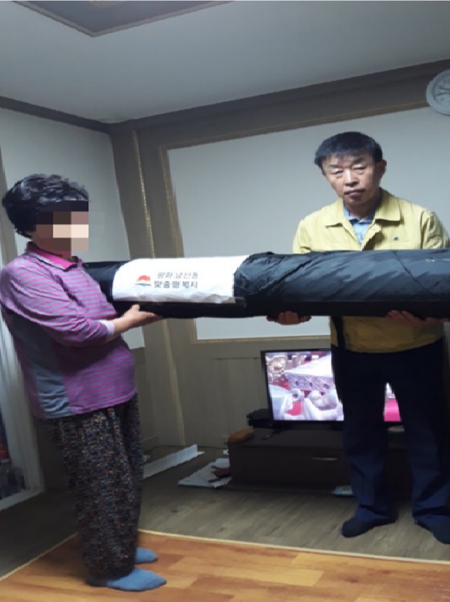 -평화남산동 맞춤형복지팀, 복지사각지대 대상자에게 온수매트 전달-