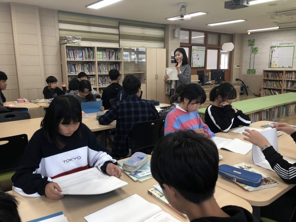 ‘친구들과 행복한 책 읽기’라는 주제로 하브루타와 슬로우리딩을 통한 대화를 익히는 방법으로 김영미 강사의 수업이 진행되었다. 스스로 읽기, 친구와 읽기, 오감으로 읽기 등으로 생각의 문을 여는 수업으로 하브루타와 슬로우 리딩에 대한 생각을 넓히는 수업이 되었다.
