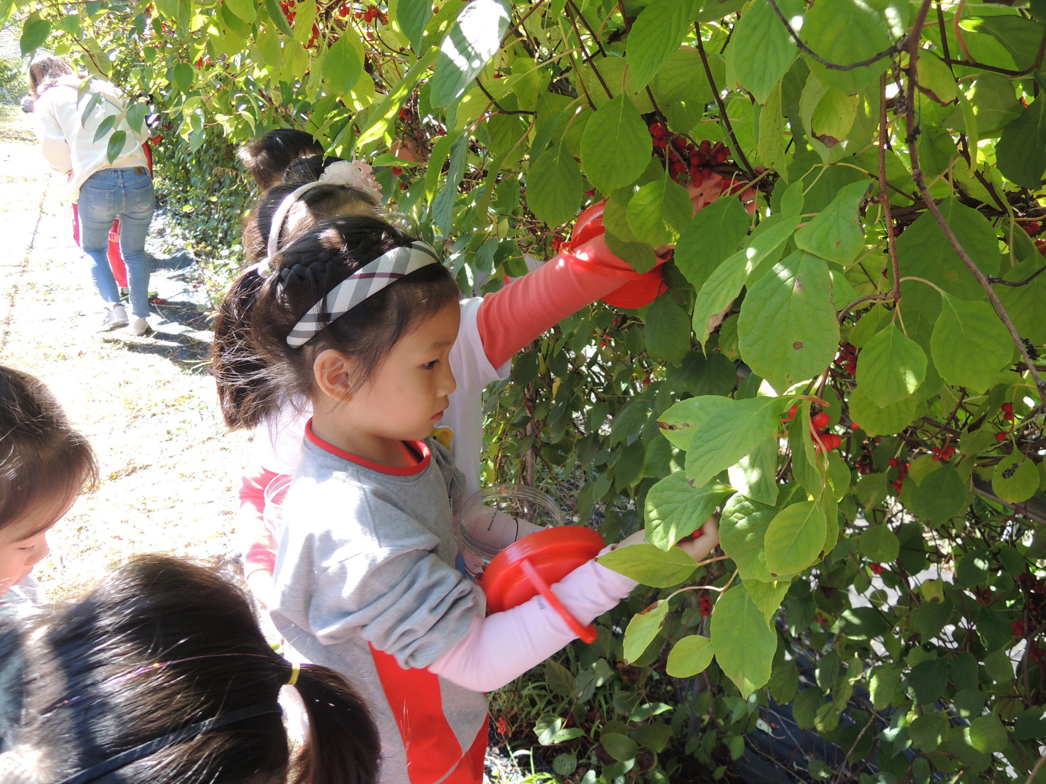 새빨갛게 익은 오미자를 유아들이 직접 따며 수확의 기쁨을 느껴보고 설탕과 혼합하여 오미자청 담그기 체험을 하였다. 유아들은 자신이 만든 오미자청 맛이 어떤지, 언제 먹을 수 있는지, 왜 설탕을 넣는지 호기심과 기대감에 가득 찬 모습이었다.