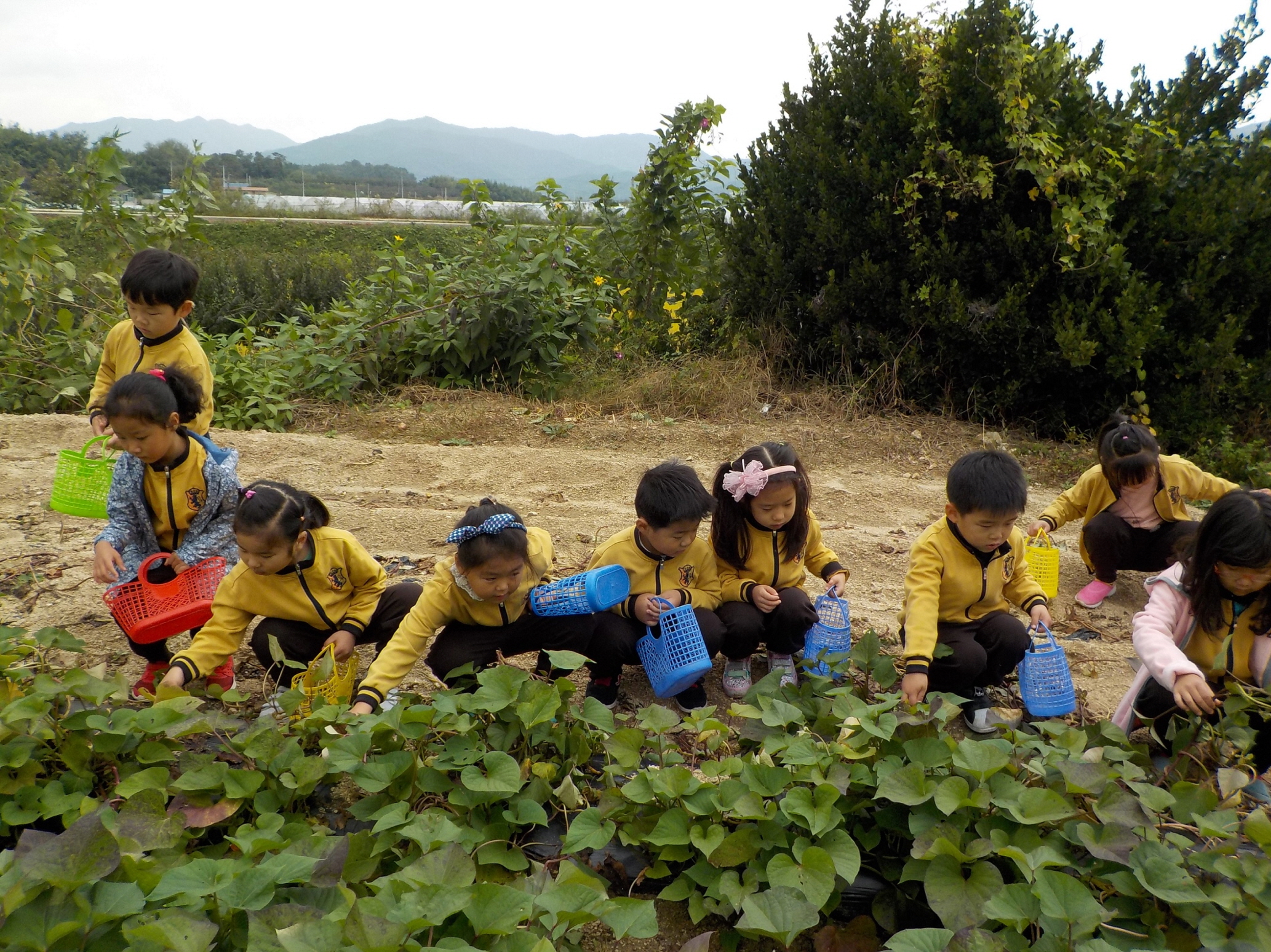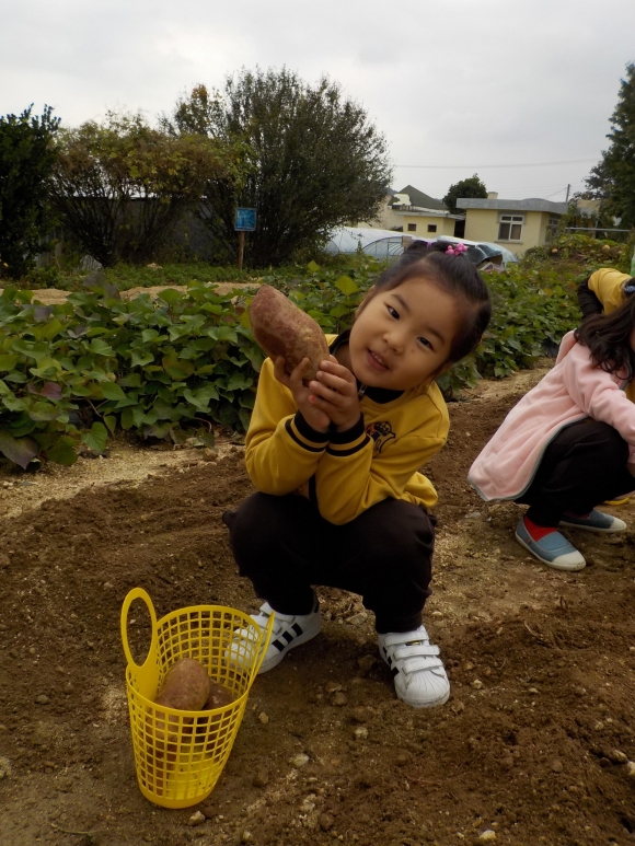 10월 가을 풍경 즐기기 생활주제와 연계하여 가을 풍경을 느끼며 결실의 계절 가을을 맞이하여 아름다운 자연 속에서 체험활동을 하였다. 땅 속에 숨은 고구마 캐기 활동을 하면서 유아들은 고구마를 찾을 때마다 수확의 기쁨을 누리며 환호성을 질렀다. 먹기만 하던 고구마를 직접 캐기 체험활동하면서 유아들은 농부가 된 것 같다며 고구마를 많이 캐기 위해 노력하는 모습을 보였다. 체험활동 하면서 유아들은 자연이 주는 아름다움과 웃음이 있는 즐거운 추억을 선물 받았다.