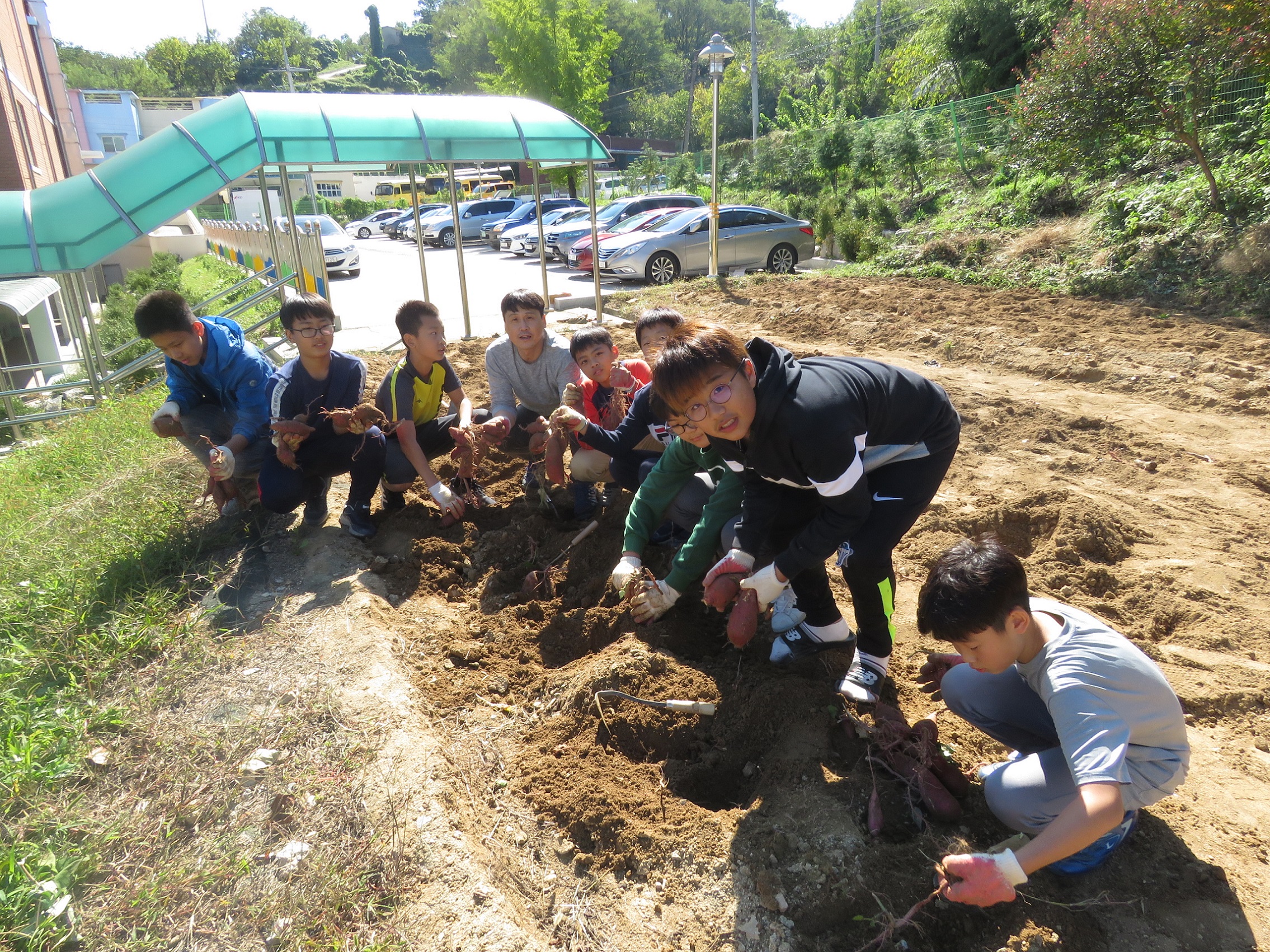 이날 학생들은 봄부터 정성껏 모종을 심고, 자라는 동안 풀도 뽑아주고, 거름도 주며 성장과정을 관찰한 고구마를 캐며, 호미를 가지고 흙장난 하듯 고구마를 캤고, 잘익은 고구마가 드러나자 여기저기서 탄성을 지르며 수확의 기쁨을 즐겼다.