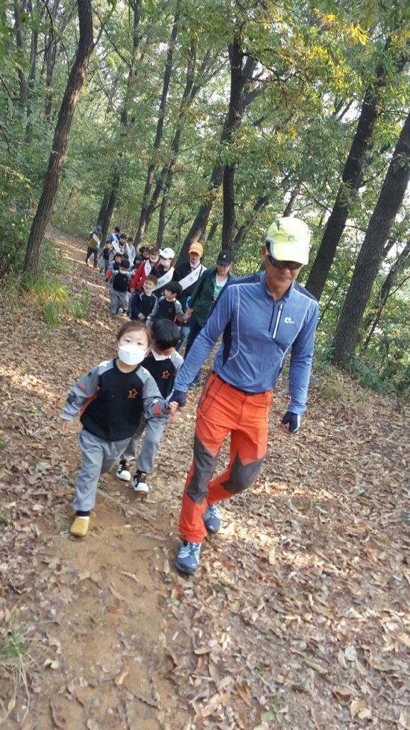 원감 선생님의 안전과 질서에 대한 주의사항을 듣고 준비운동을 한 후 질서와 차례를 지키며 산에 올랐다. 곳곳의 계단과 오르막 내리막 구간에서는 부모님의 도움으로 조심하며 지나갔으며, 먼저 올라온 친구가 올라오기 힘든 친구를 기다려주고 도와주면서 서로 협동하는 마음을 길렀다. 또한 산 중간에 나무와 여러 식물들을 관찰하고, 숲이 주는 이로움을 생각해 보았다.