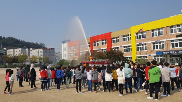 | 김천모암초등학교(교장 허영란)는 지난 10월 17일 오전10시 30분부터 김천소방서에서 무각본 소방훈련을 학생·교직원을 대상으로 실시 평가하였다.