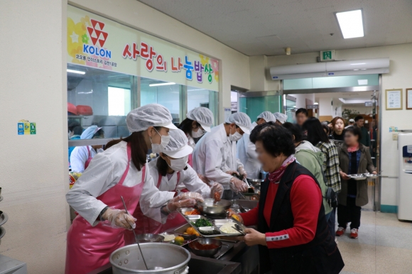류득수 공장장을 비롯한 코오롱 직원들은 위생모와 앞치마를 두르고 배식봉사 및 식사수발을 했으며 정기적으로 복지관을 찾아 노력봉사 및 나눔 밥상을 지원하고 있다.