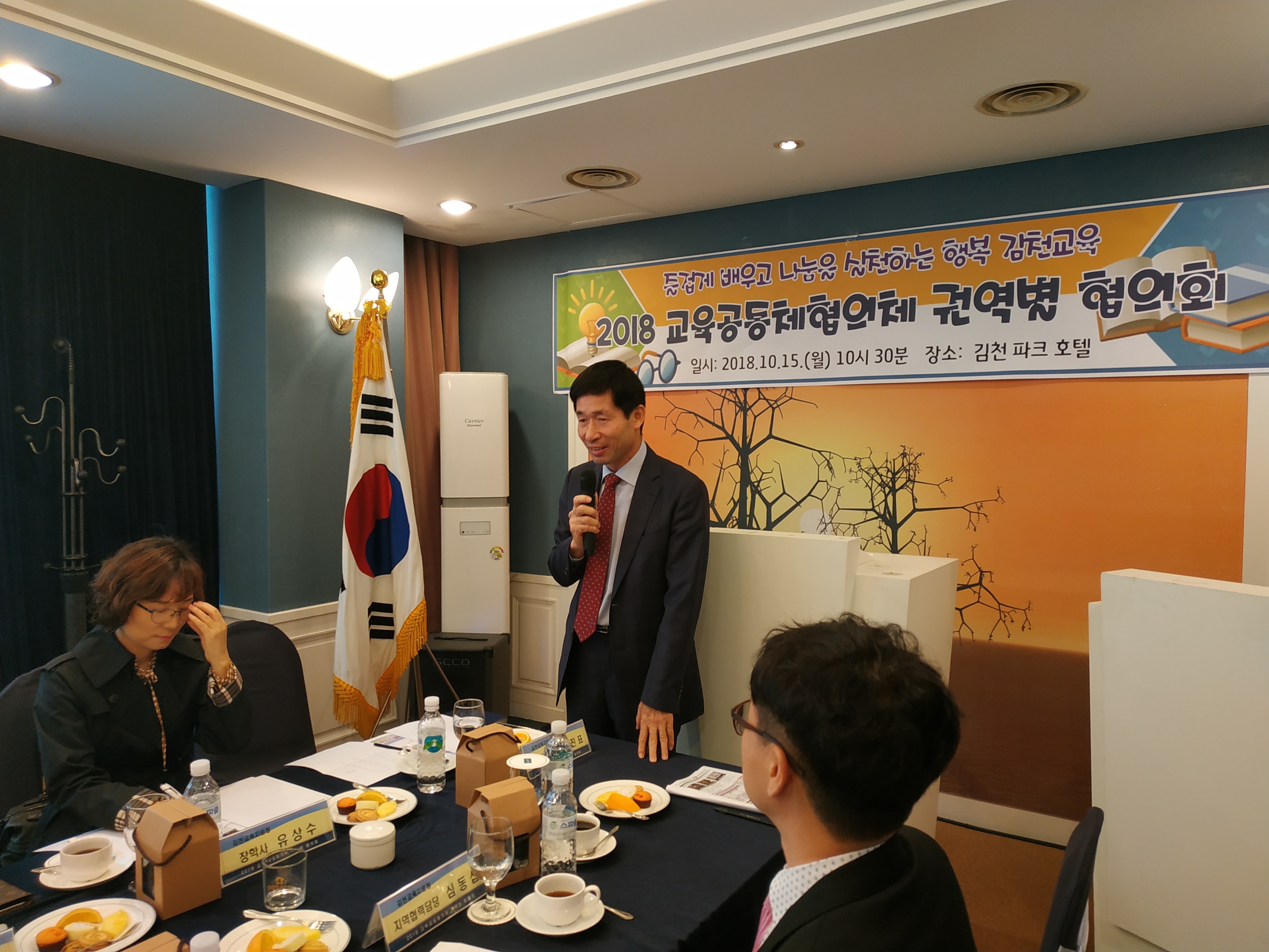 김천부곡초 최승희 교감선생님의 사회로 진행된 교육공동협의체 1권역 협의회는 국민의례, 참석자소개, 인사말씀, 학교별 교육활동 우수사례 및 현안사업 발표, 기타협의 순으로 진행되었다.