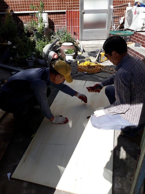 | 평화남산동 지역사회보장협의체(공동위원장 고진석) 그리고 재능기부봉사단은 19일 열악한 주거환경에서 거주하고 있는 관내 저소득 대상자 중 한 가구를 선정해 보수 공사를 시행했다.