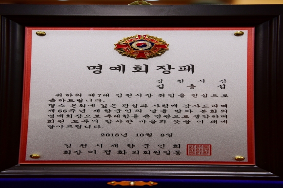 김충섭 김천시장 재향군인회 명예회장으로 임명