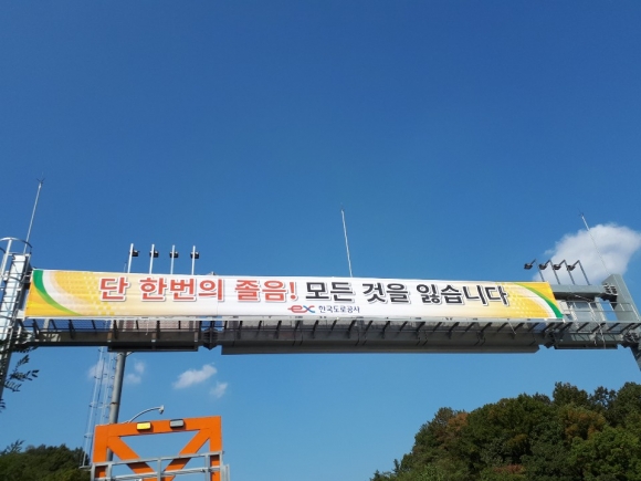 | 한국도로공사(사장 이강래)는 이번 달부터 전국 고속도로 본선과 영업소 등 총1,189곳에 졸음운전 예방 홍보 현수막을 설치했다고 밝혔다.