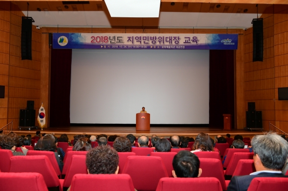 | 김천시(김천시장 김충섭)는 지난 24일 문화예술회관 대공연장에서 22개 읍면동 489명의 지역민방위대장을 대상으로 민방위대장 특별교육을 실시하였다.