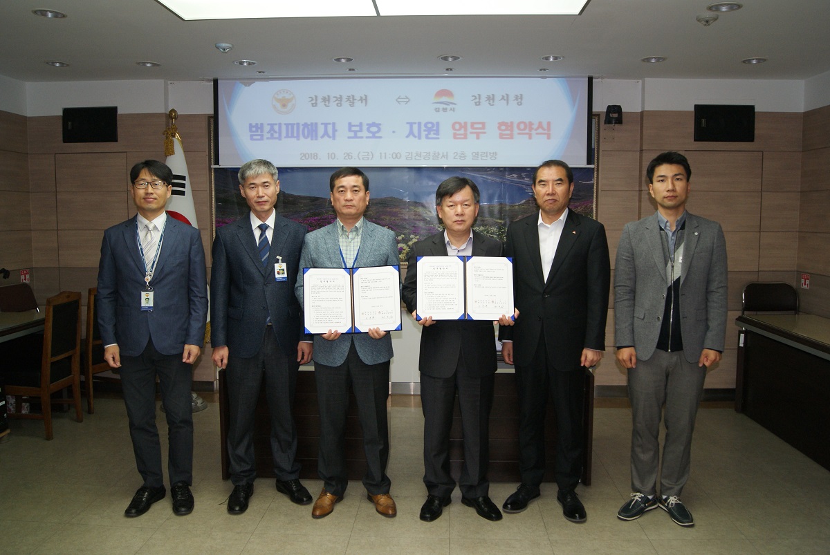 이날 자리에는 김천경찰서 청문감사관, 피해자전담경찰관 및 김천시청 행복나눔과장, 희망복지지원계장 등이 참석하여, 지역에서 발생하여 고통받는 범죄피해자들이 하루빨리 회복할 수 있도록 다양한 지원 혜택을 통해 양 기관이 상호 협력함은 물론, 필요시 맞춤형 사례회의로 타기관과 연계하는 등 복지사각지대가 발생치 않도록 업무 협약식을 체결 하였다.