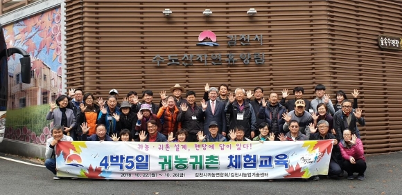 | 김천시(시장 김충섭)에서는 도시민들의 은퇴 시기와 함께 귀농·귀촌에 대한 관심이 높은 사회적 분위기 속에 다른 지역 귀농·귀촌 희망 도시민을 대상으로 <4박 5일 김천시 귀농·귀촌 체험교육>과정을 개설하여 지난 22일부터 26일까지 교육생 30명을 대상으로 귀농귀촌 현장체험 교육을 실시했다.