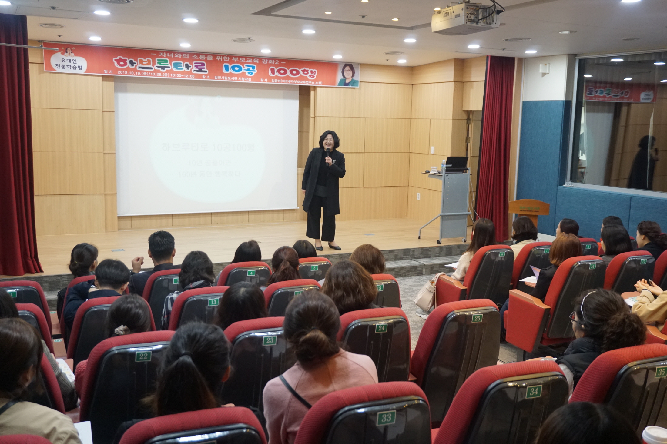 ‘하브루타로 10공 100행’이라는 주제로 진행된 부모교육에서 김금선 하브루타부모교육연구소 소장은 이론위주의 공부법이 아니라 실제 가정에서 적용가능한 하브루타의 교육법을 제시하여 부모들의 열렬한 호응을 얻었다.