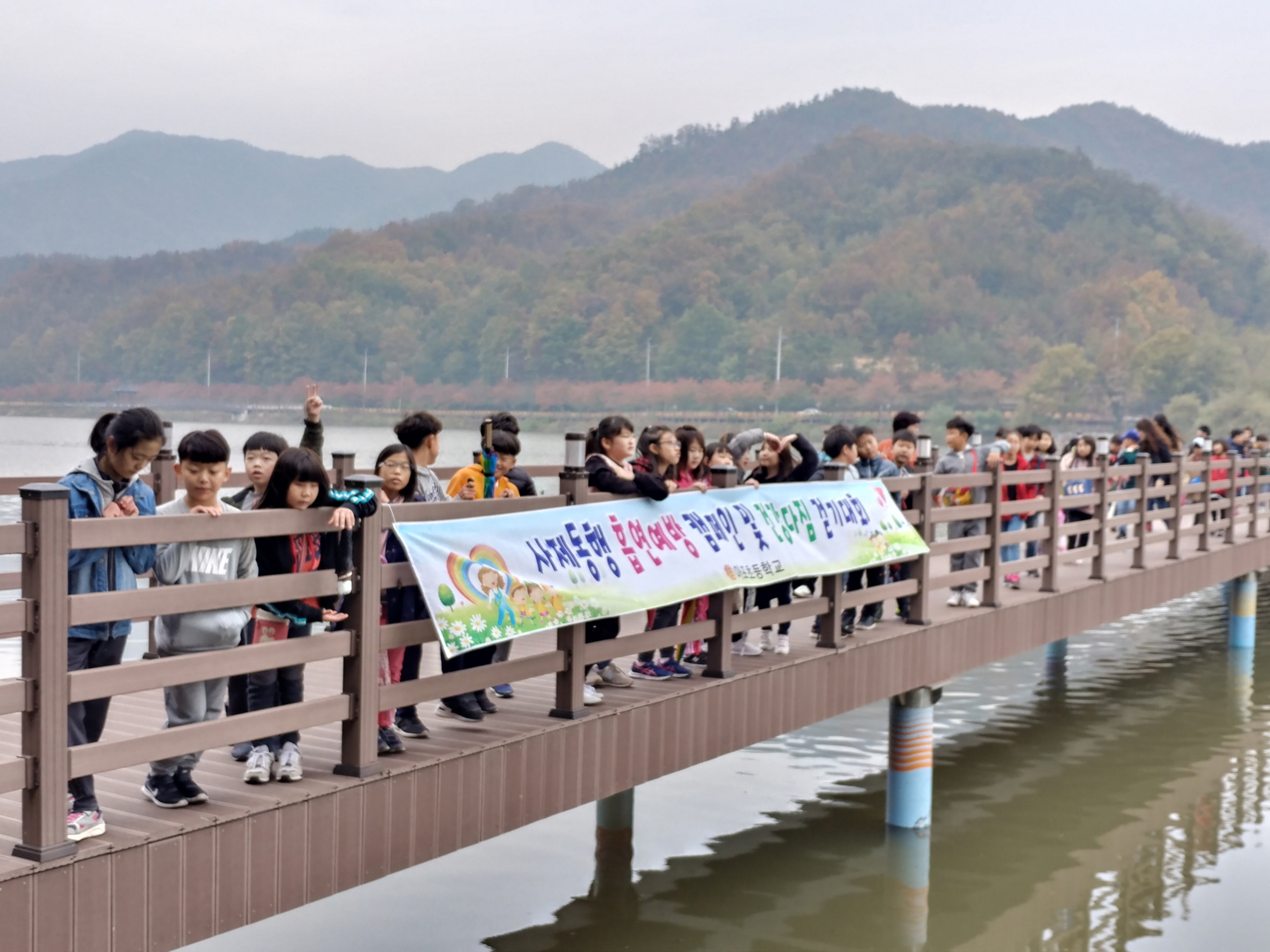 | 아포초등학교(교장 이경옥)는 아포송백제와 연계하여 지난 26일 오봉저수지 인근에서 학생, 교사 185명이 참여하여 「2018 사제동행 흡연예방 캠페인 및 건강다짐 걷기대회」를 개최하였다.