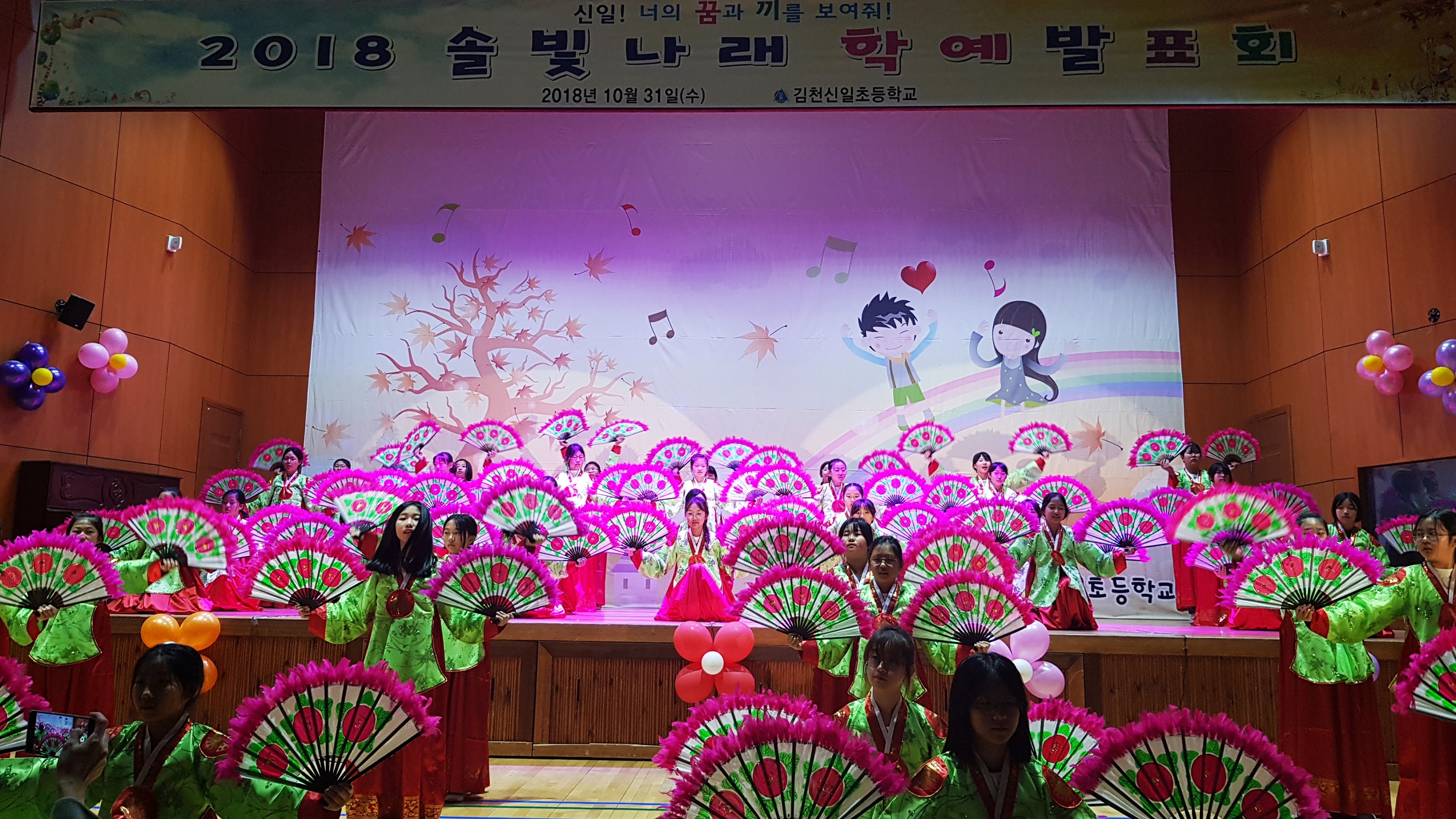 | 김천신일초등학교(교장 권명준)는 지난 10월 31일 오전 10시 솔누리관(본교 강당)에서 교육의 3주체인 학생, 학부모, 교직원이 하나 되어「2018학년도 솔빛나래 학예발표회」를 실시하였다.